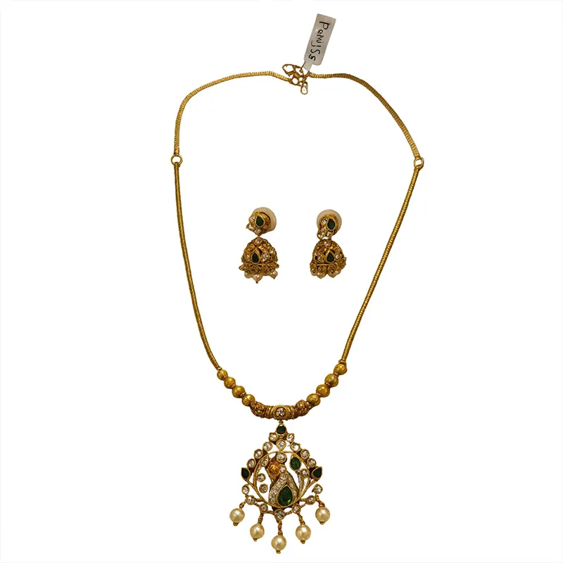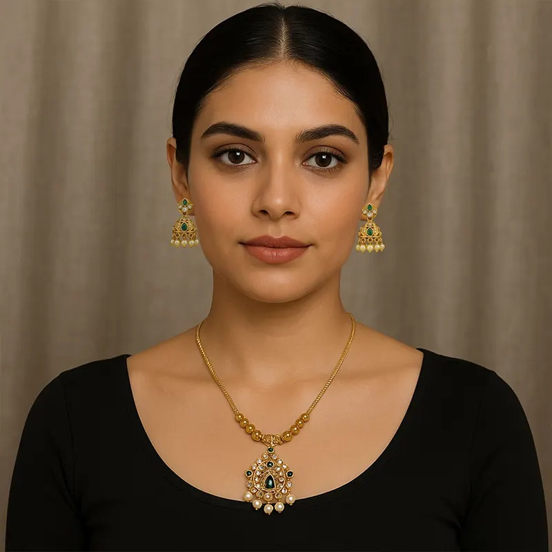 Where tradition meets timeless beauty — the Kundan Jumki Pendant Set brings together the radiance of Kundan with the elegance of classic jhumki design.