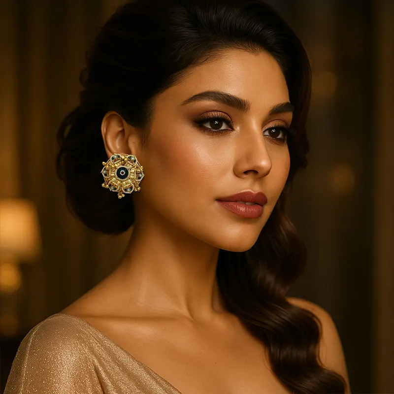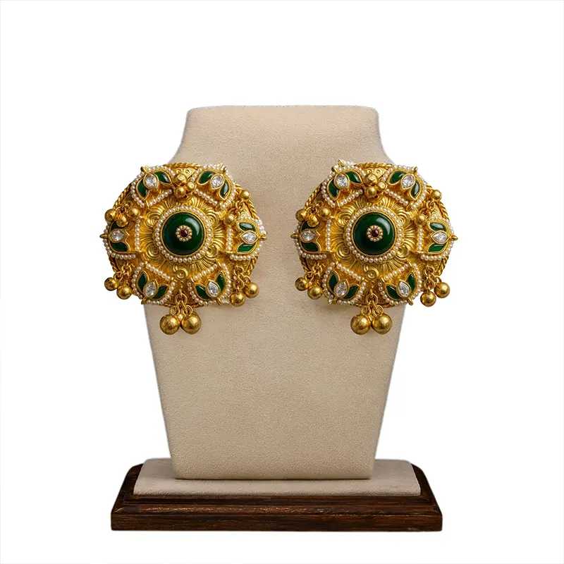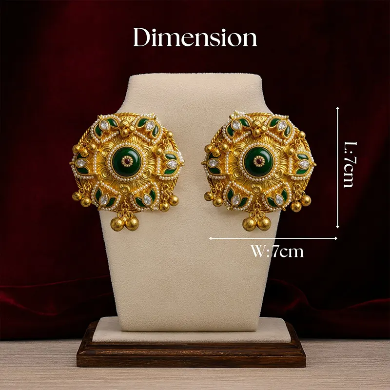 A poetic ode to purity and grace, the Lotus Carving Moti Earrings blend timeless artistry with delicate elegance. Featuring intricately carved lotus motifs paired with lustrous pearls, they capture the essence of divine beauty in every detail.