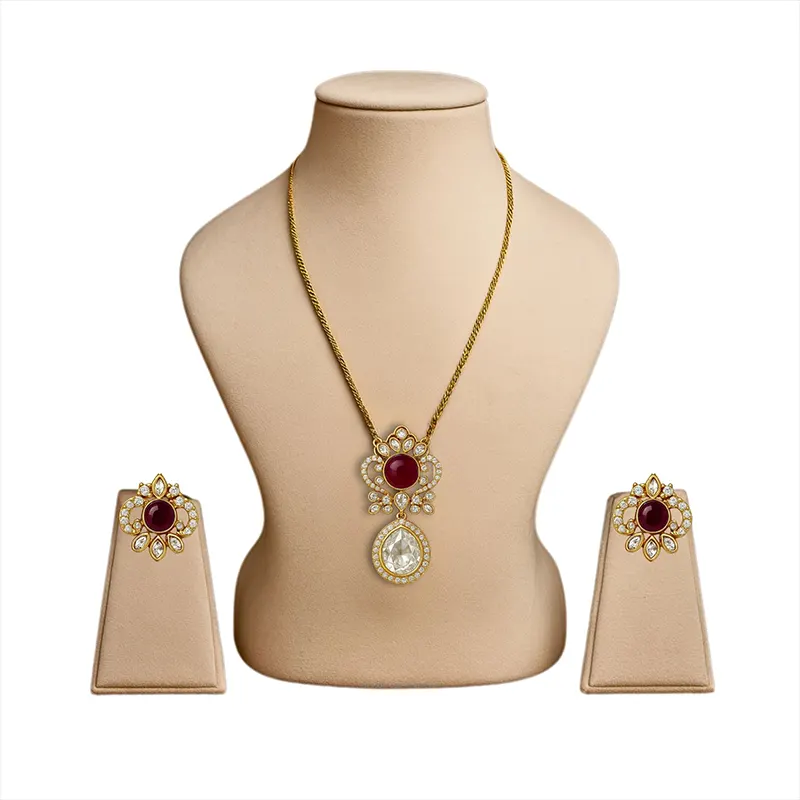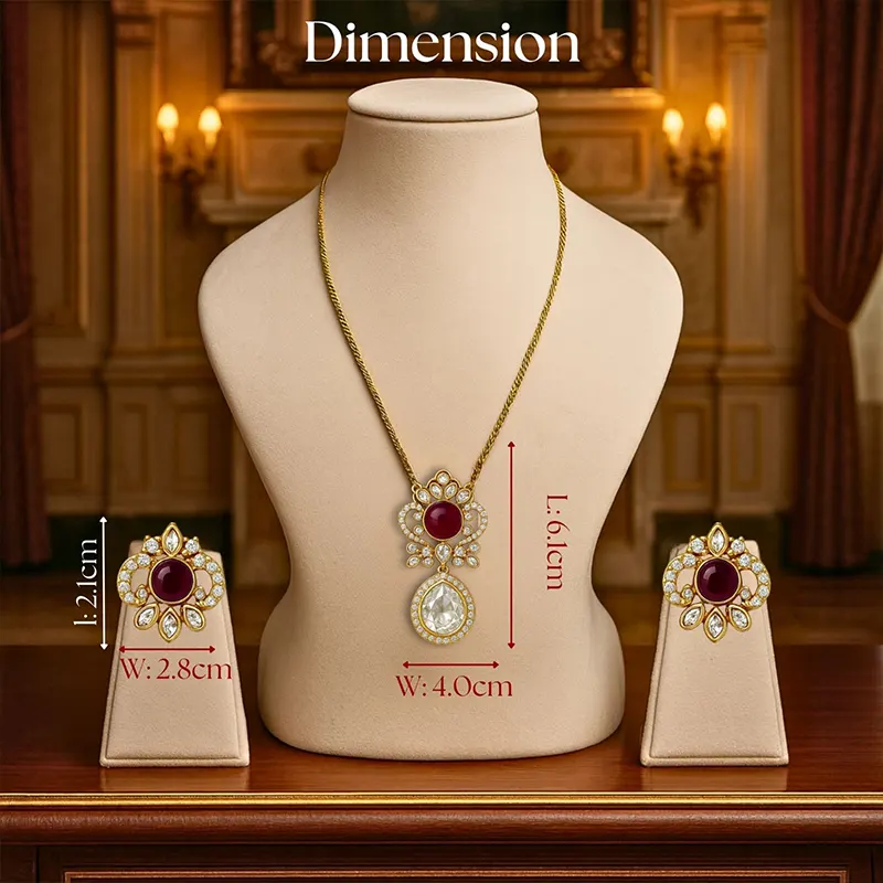 Ruby crown pendant with chain + matching earrings (stud or drop style, design-dependent)